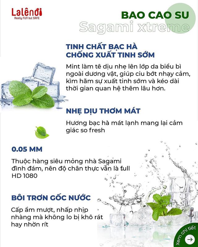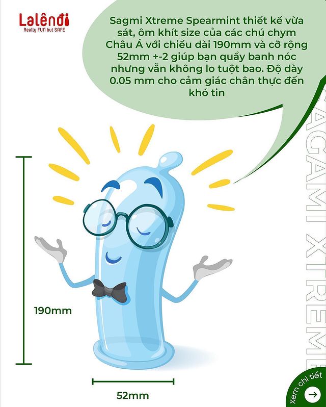 - Chất liệu: Cao su tự nhiên được thêm tinh chất bạc hà vào chất bôi trơn tạo cảm giác tươi mát dễ chịu, tăng sự hưng phấn
